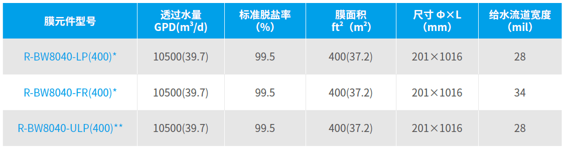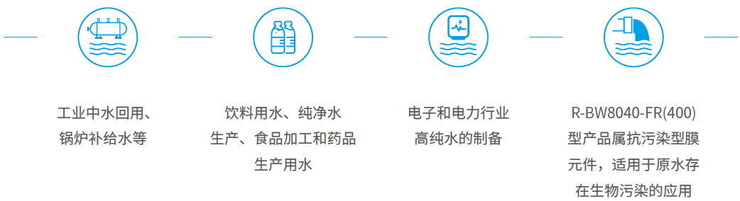 寿命长 独特元件结构及后处理工序,配合34 mil 进水宽流道,可在更宽泛的pH(1~13)内达到有效清洗效果,使元件更经久耐用;