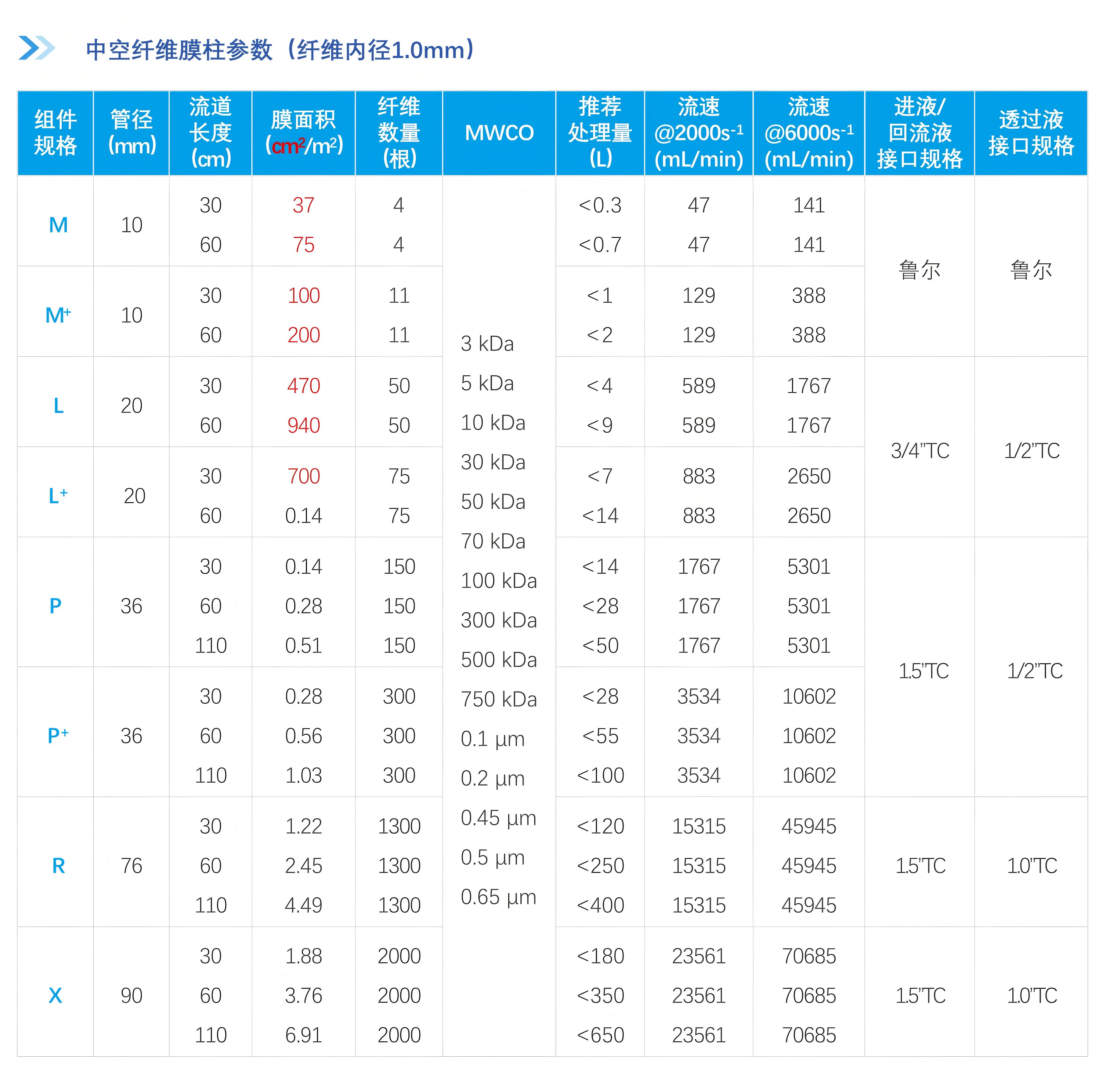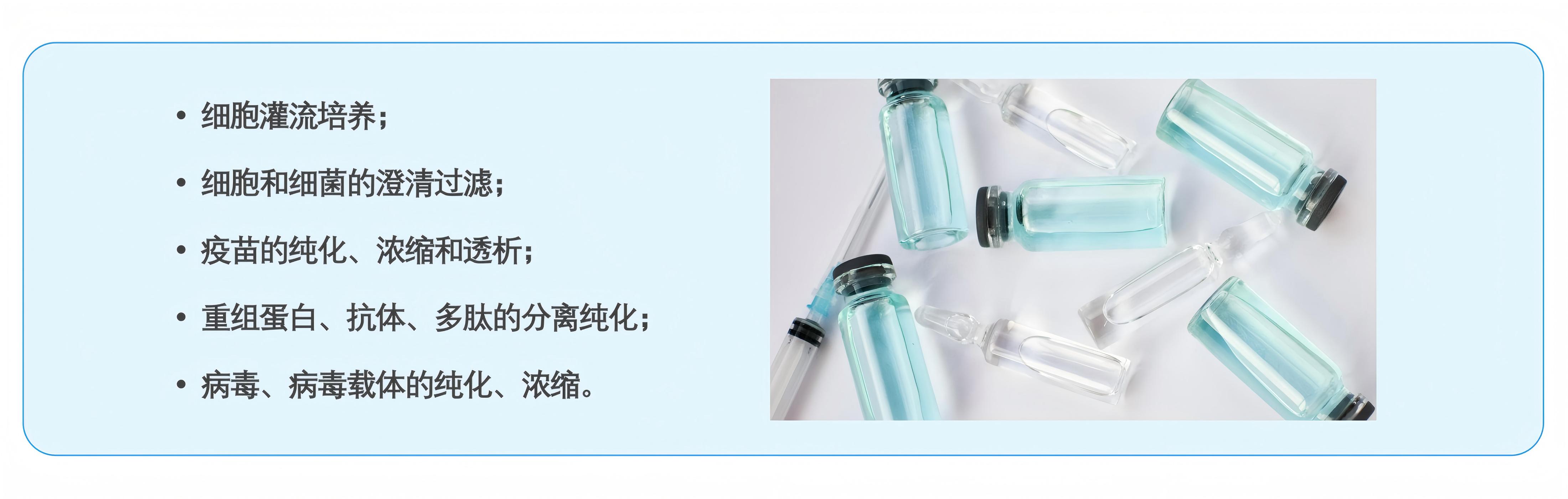 金年会可提供不同孔径、多种过滤面积的中空纤维膜柱,满足生物制药行业中不同工艺的过滤需求,助力生物制药企业提高产品收率。