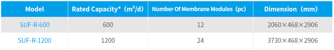 The SUF (Submerged Ultrafiltration Membrane Unit), composed of different quantities of submerged ultrafiltration membrane modules, can be flexibly configured according to the user’s requirement. Combining the open spacer and integrated aeration stystem, the unit is featured with high effluent quality and strong fouling resistance. The product is one of the significant achievements in Major Science and Technology Program for Water Pollution Control and Treatment during “the 12th Five-Year Plan”, and it has been selected as National Torch Plan Project and the Major Environmental Protection Equipment Encouraged by the State, and has been awarded with the New Technology and New Product in Zhongguancun, the Beijing New Technology and New Product, etc.