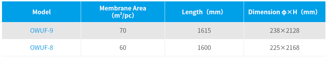 THE OWUF (External Ultrafiltration Membrane Unit), breaking through the design of polyvinylidene fluoride (PVDF) ultrafiltration super-hydrophilic modification and new detachable structure and eliminating membrane fouling in the application process of ultrafiltration membrane, is featured with higher sewage interception and larger filtration area. Thus, the system is ensured to run stably for a long term. It is one of major achievements of water projects during “the 12fth Five-Year Plan”, and it has been awarded as the New Technology and New Product in Zhongguancun, the Beijing New Technology and New Product and etc. It has been successfully applied to the world’s largest Gaobeidian reclaimed water projects (1 million m³/d), and becomes the milestone for ultrafiltration membrane unit applied to the reclaimed water field in China.