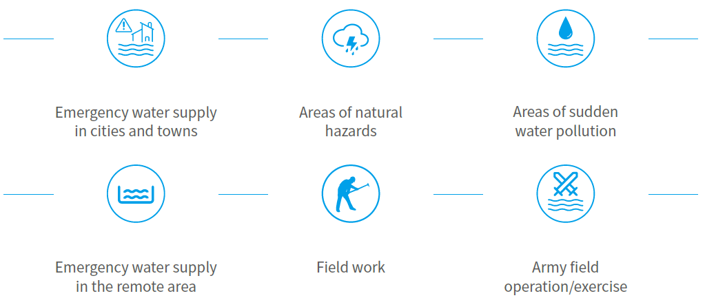 The Emergency Water Purifying Vehicle is a mobile mergency water purifying equipment in case of typhoon, earthquake, flood, debris flow, other natural disasters and sudden water pollution accidents. It is an organic combination device of drinking water preparation technology and vehicle based on UFDF/RO double membrane and is developed by OriginWater. The vehicle, featured with strong applicability of raw water, quick response, reliable performance and supplying water relying on the motivation and so on, meets all kinds of the emergency water supply needs. The National Capacity for Emergency Rescue for Water Supply project of the Ministry of Housing and Urban-Rural Development passes the acceptance inspection.