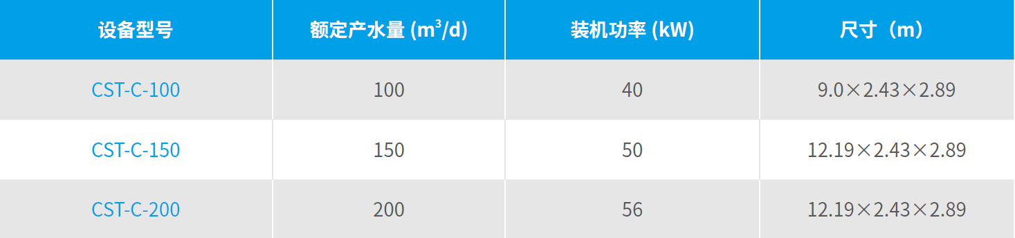 注:(1)装置进水温度3~40 ℃,工作电压380 V,操作压力4~6.5 MPa;